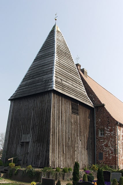 Diese Kirche wurde 1299 dem St. Gallus geweiht. Sie steht auf dem Massengrab der Stedinger, die 1234 in der Schlacht bei Altenesch starben. Ludwig Münstermann errichtete die Kanzel. Eine der wenigen Wilhelmi-Orgeln ist hier zu finden. Die Glocke wurde 1790 vom bremischen Glockengießer Brand gegossen.